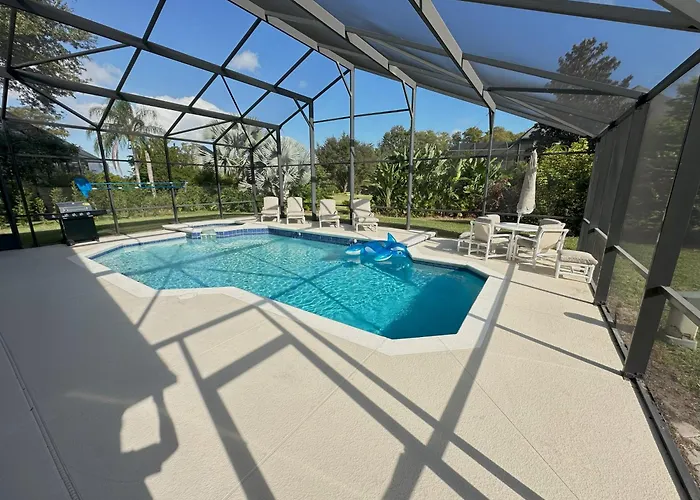 The 4-bedroom Mickeys Palm - Brand New! 6Br Modern With Private Pool Hot Tub Bbq Home Theater - 2 Miles To Disney is located just a 6-minute walk from Ship Wreck Island Water Park and offers a Jacuzzi for guests' relaxation. Featuring a sunny patio, this property is situated at a distance of 4.8 km from ESPN Sports Complex.